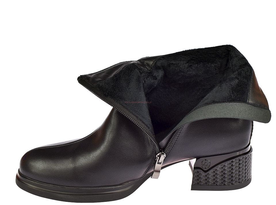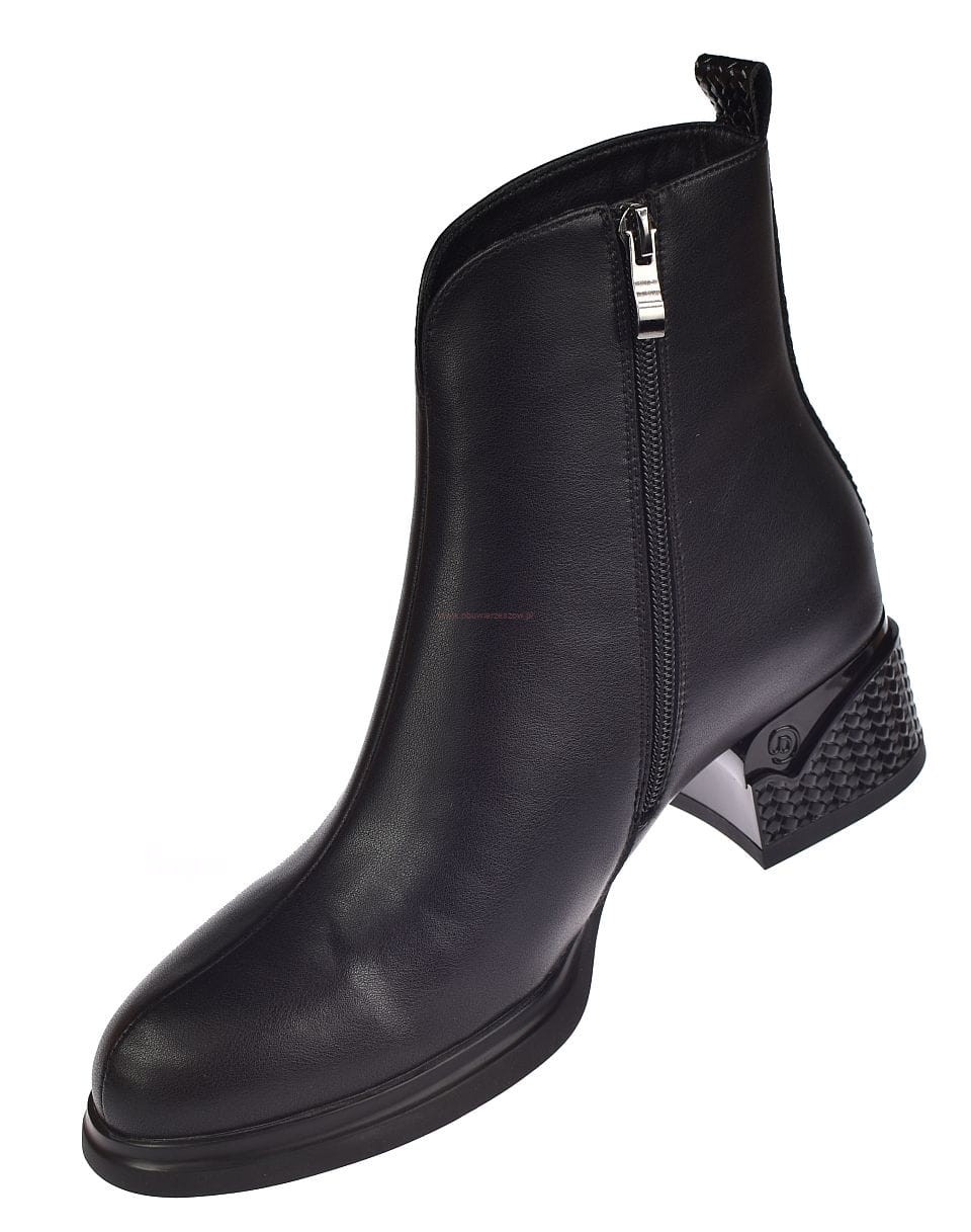 Botki skórzane damskie czarne JK/B-3-201 ocieplane, na obcasie typu klocek z zamkiem