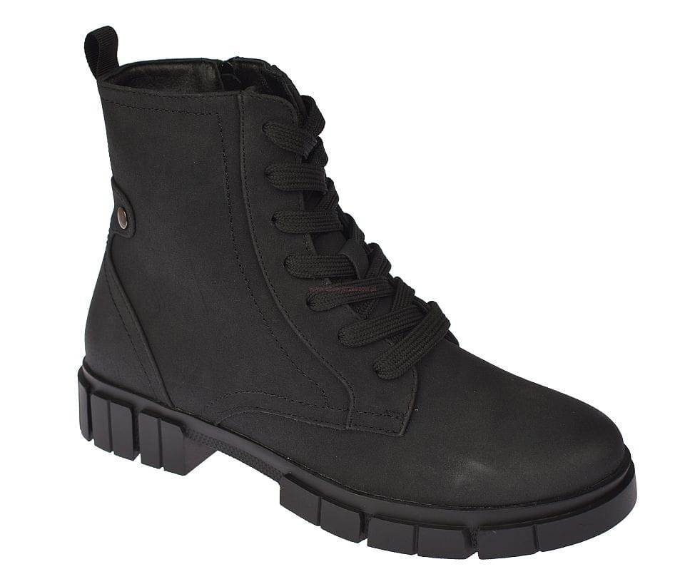 Botki wysokie damskie Skotnicki B-3-1347 – czarne matowe glany i trapery ocieplane