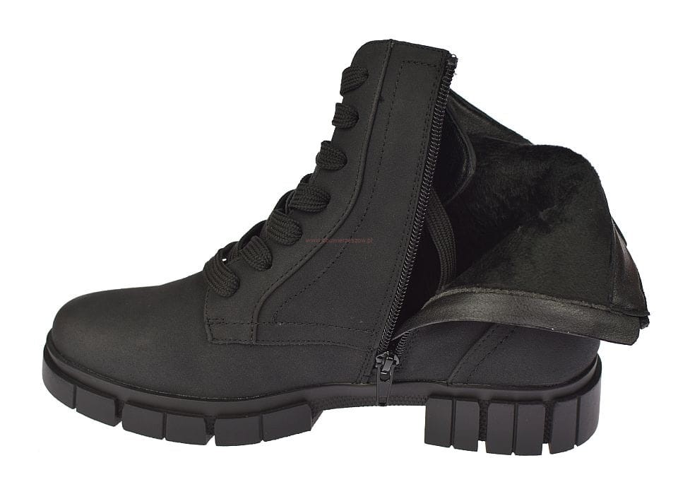 Botki zostały wykonane z czarnej eko skóry nubukowej, która jest odporna na zarysowania i łatwa w pielęgnacji. Wnętrze buta jest ocieplane, dzięki czemu Twoje stopy pozostaną ciepłe nawet w chłodne dni.