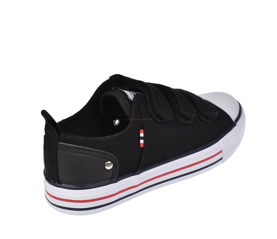 Trampki młodzieżowe na rzepy American Club LH w kolorze czarnym to idealne rozwiązanie dla dzieci i nastolatków szukających wygodnego, solidnego i stylowego obuwia na co dzień. Dzięki uniwersalnemu designowi świetnie sprawdzą się jako obuwie zmienne do szkoły, na lekcje wychowania fizycznego lub do codziennego użytku.