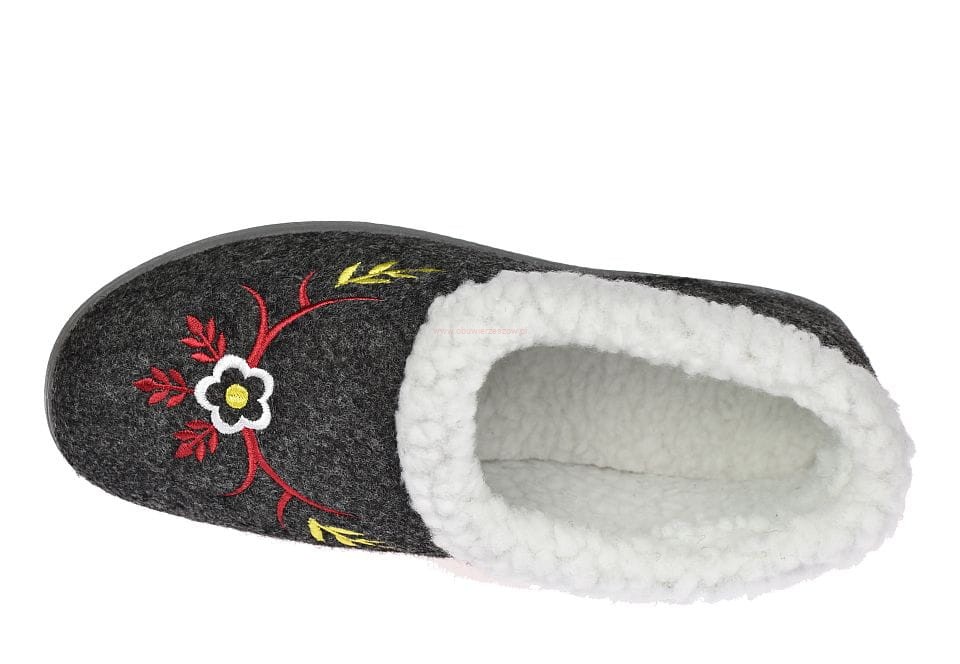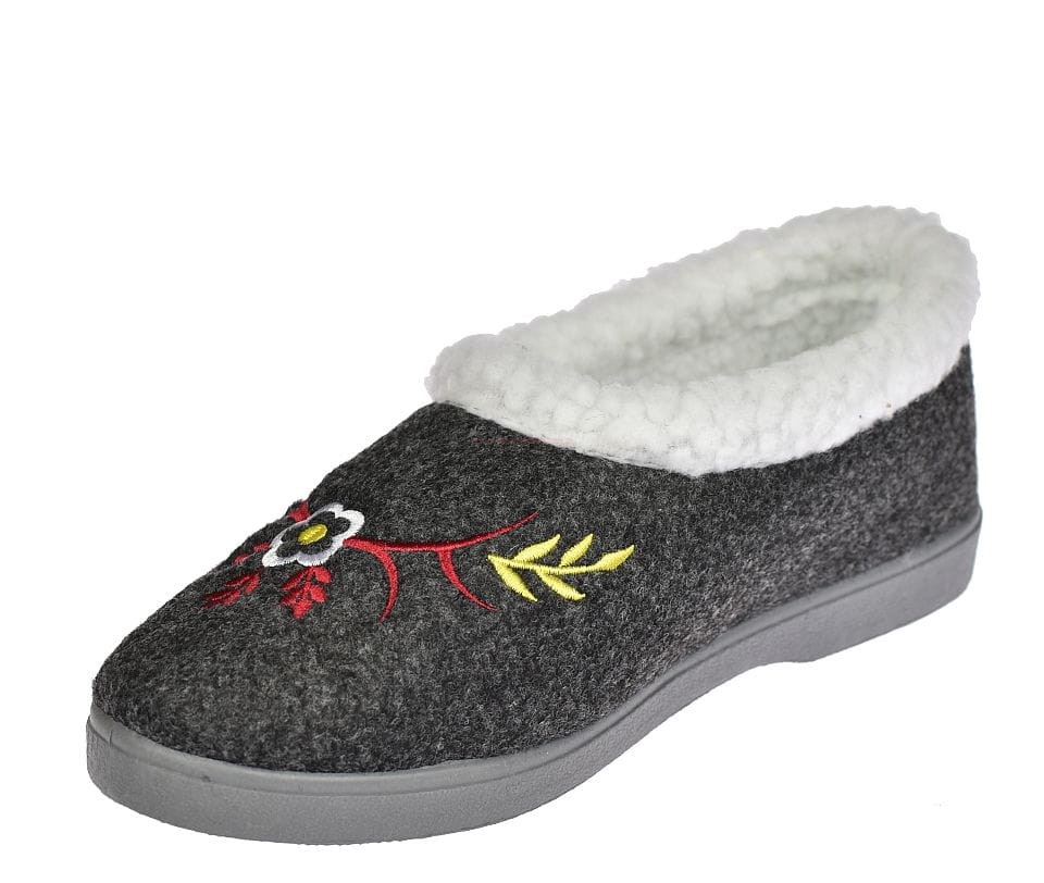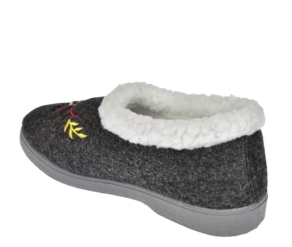 Damskie bambosze B040 szare – wsuwane kapcie filcowe z haftem