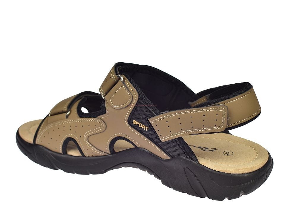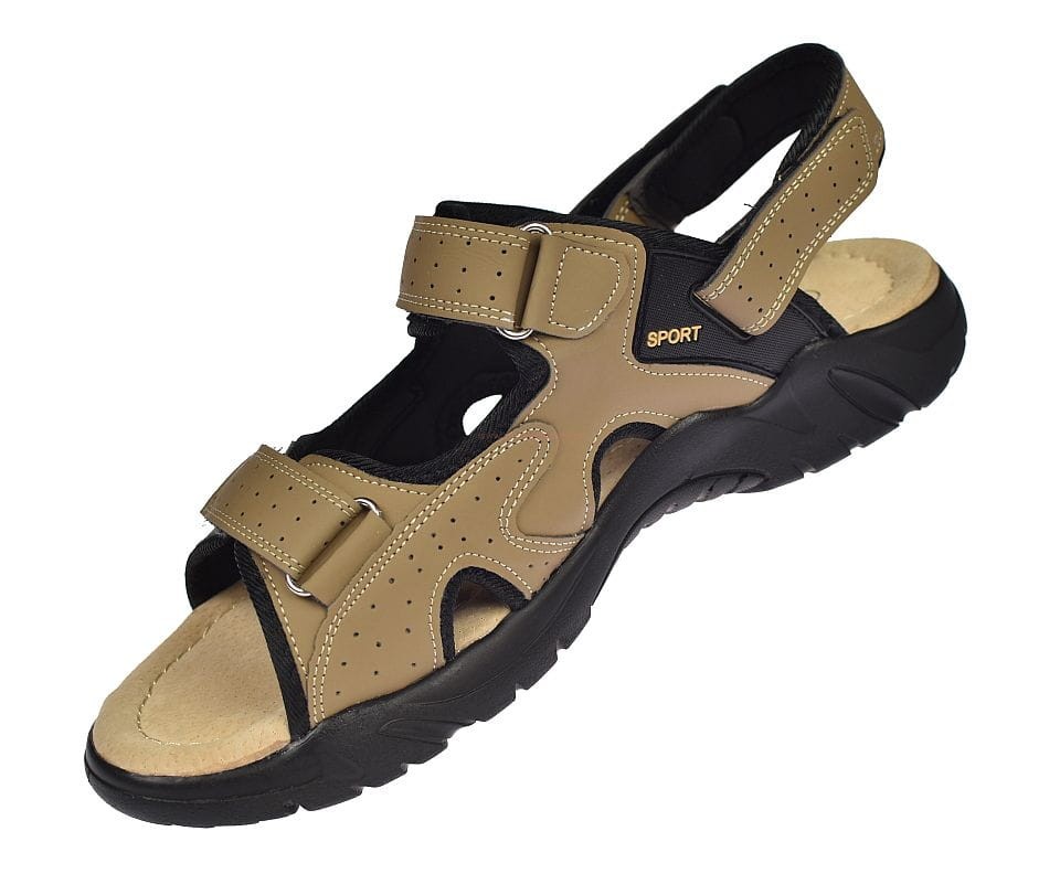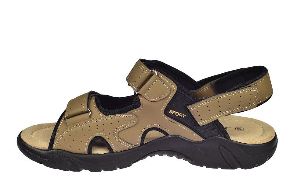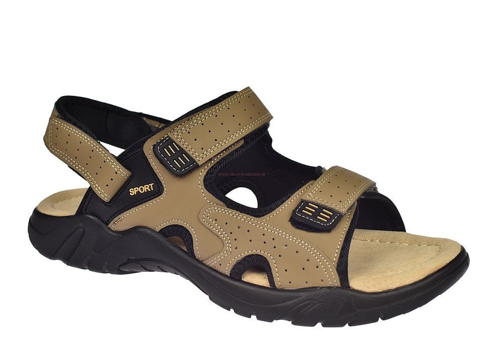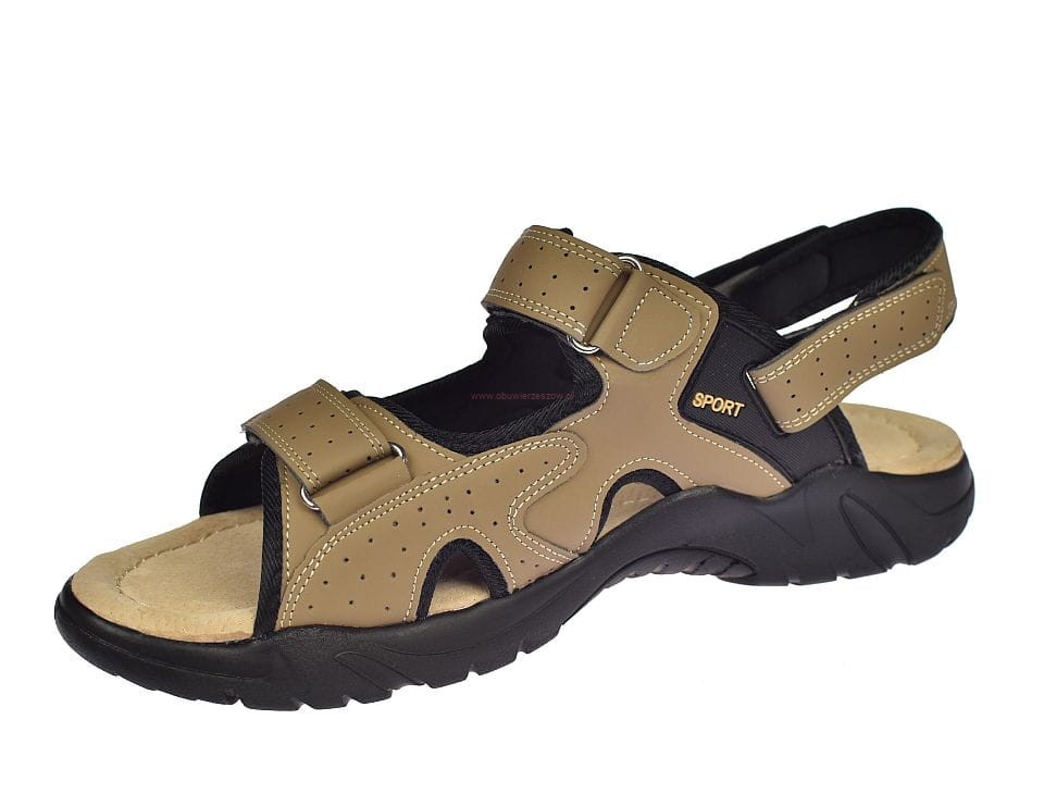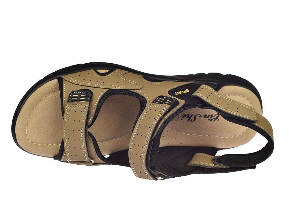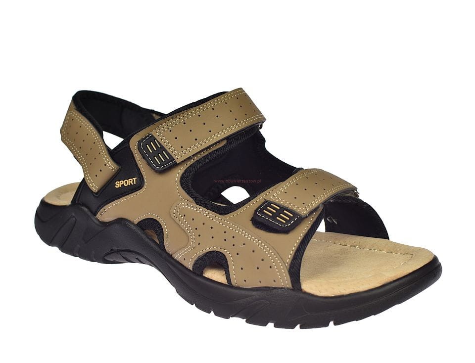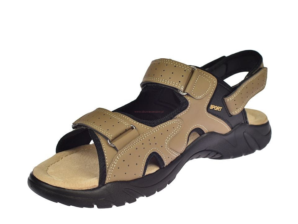 Duże sandały męskie beżowe na rzepy ze skórzaną wkładką A9002