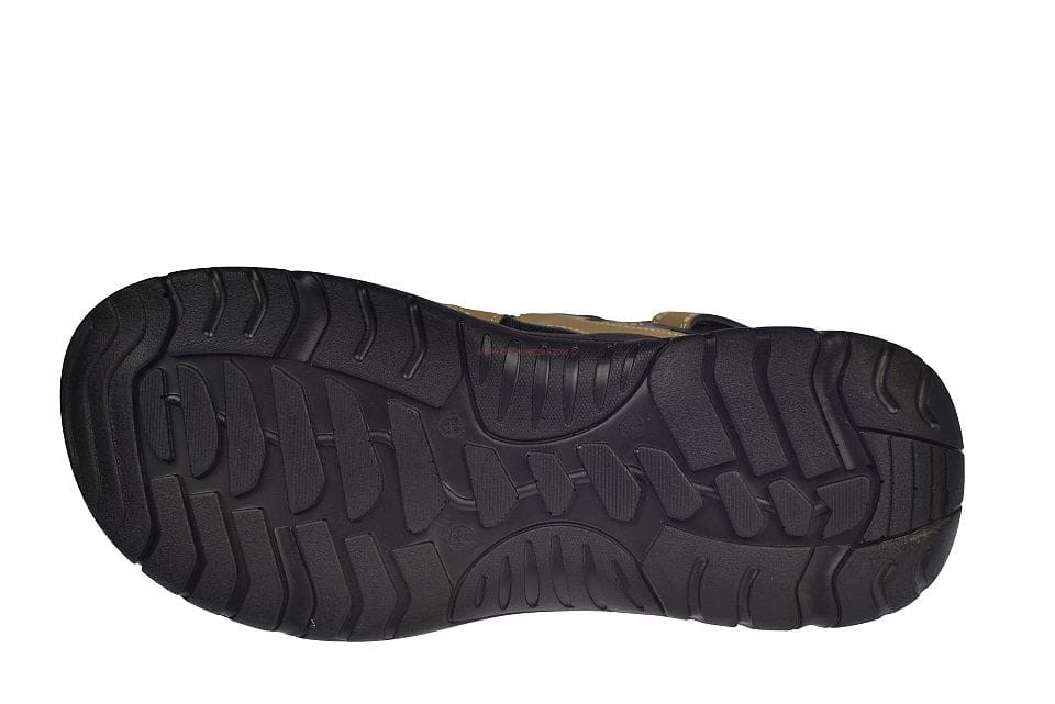 Męskie sandały beżowe A9002 na rzepy z profilowaną skórzaną wkładką. Wygodne, lekkie i idealne na lato. Duże rozmiary, elastyczna podeszwa, funkcja klapek.