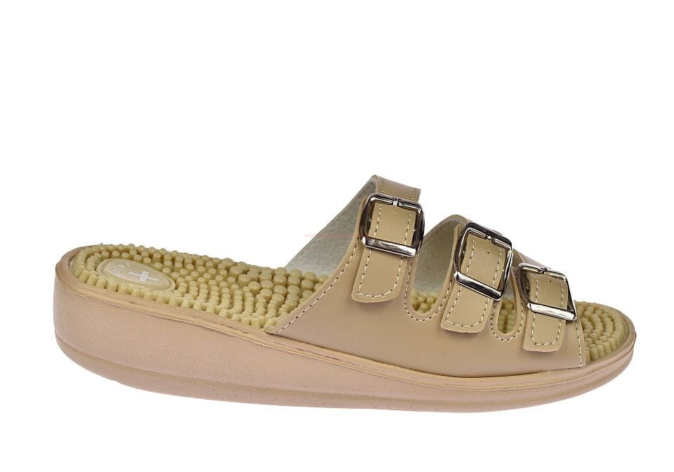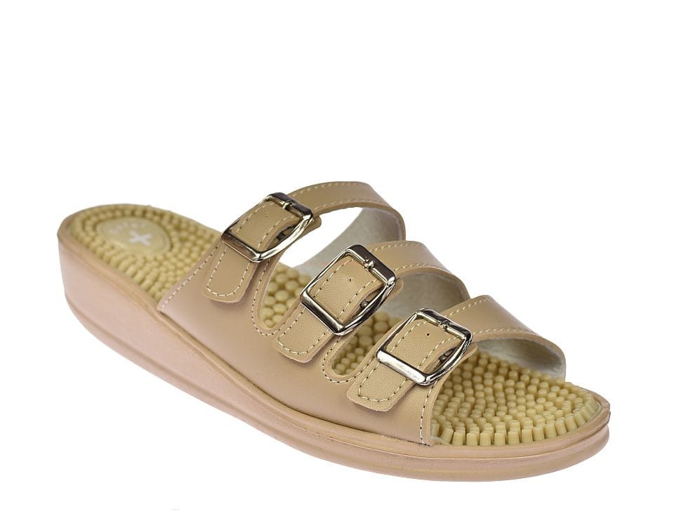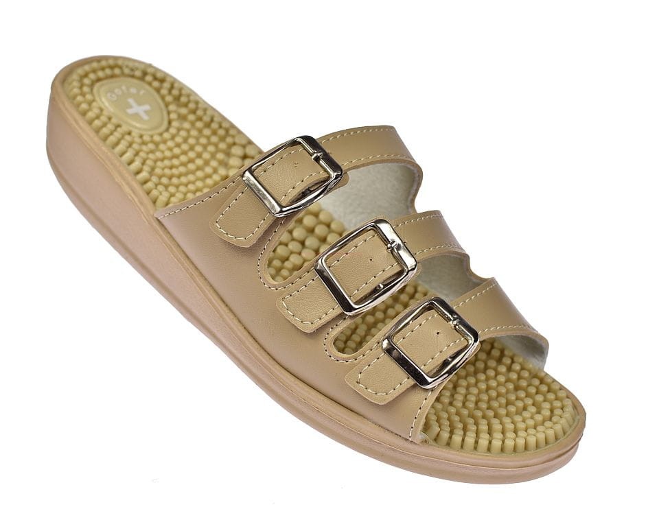 Beżowe klapki damskie masujące z kolcami 8826-3A – komfort i zdrowie Twoich stóp