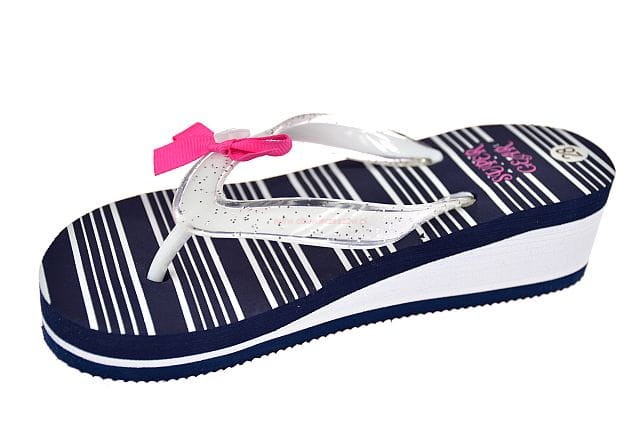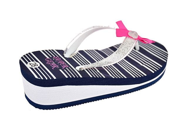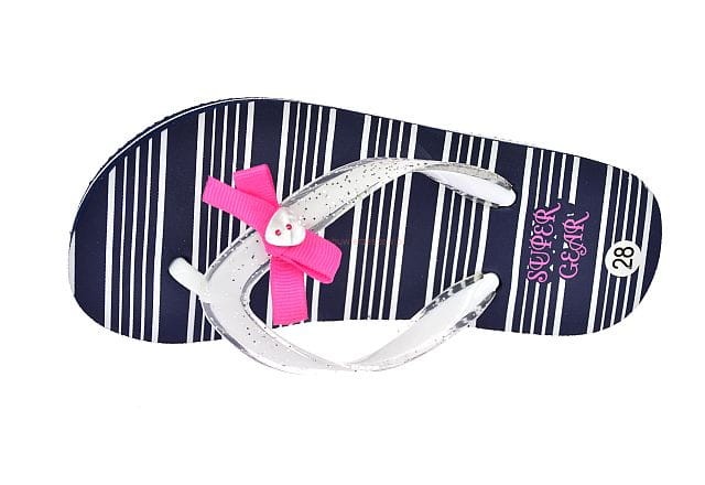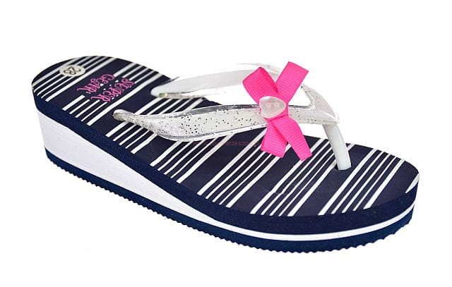 Japonki na koturnie Super Gear B835 granatowe w paski to wygodne, lekkie i trwałe obuwie dla dzieci. Miękka piankowa konstrukcja, stabilny koturn i elastyczny pasek gwarantują komfort przez cały dzień. Doskonałe na plażę, basen, wakacyjne spacery i codzienne letnie aktywności.