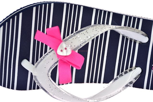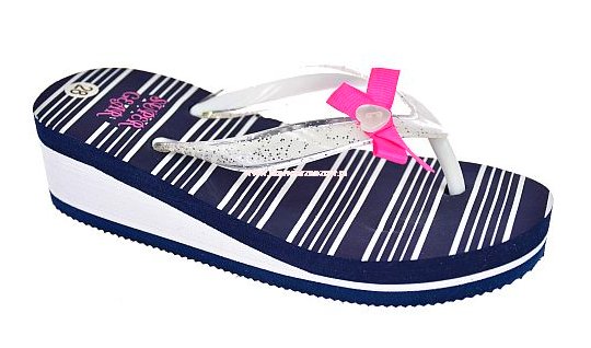 Japonki dziecięce na koturnie Super Gear B835 – granatowe w paski, lekkie i wygodne