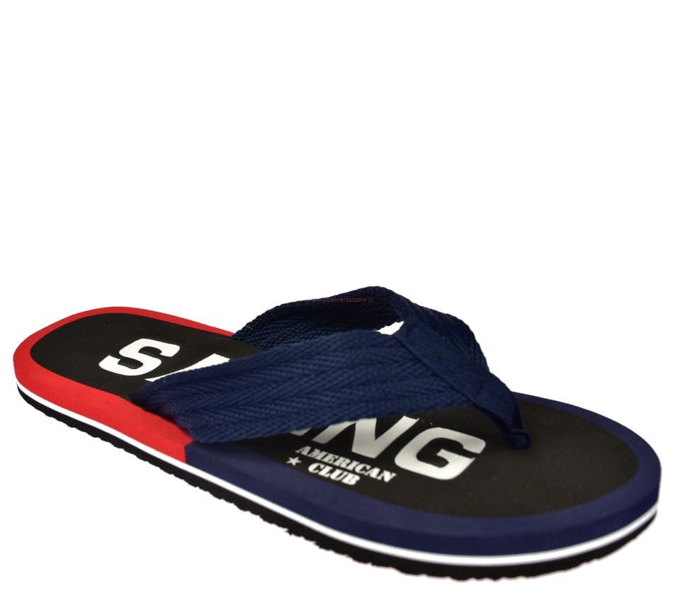 Lekkie i wygodne japonki męskie American Club JP 02/20 z szerokim, miękkim paskiem tekstylnym. Idealne na lato – elastyczna piankowa wkładka i odporna na ścieranie podeszwa zapewniają komfort i trwałość.