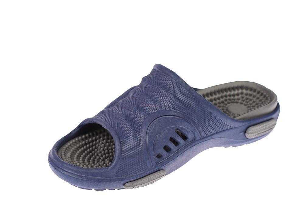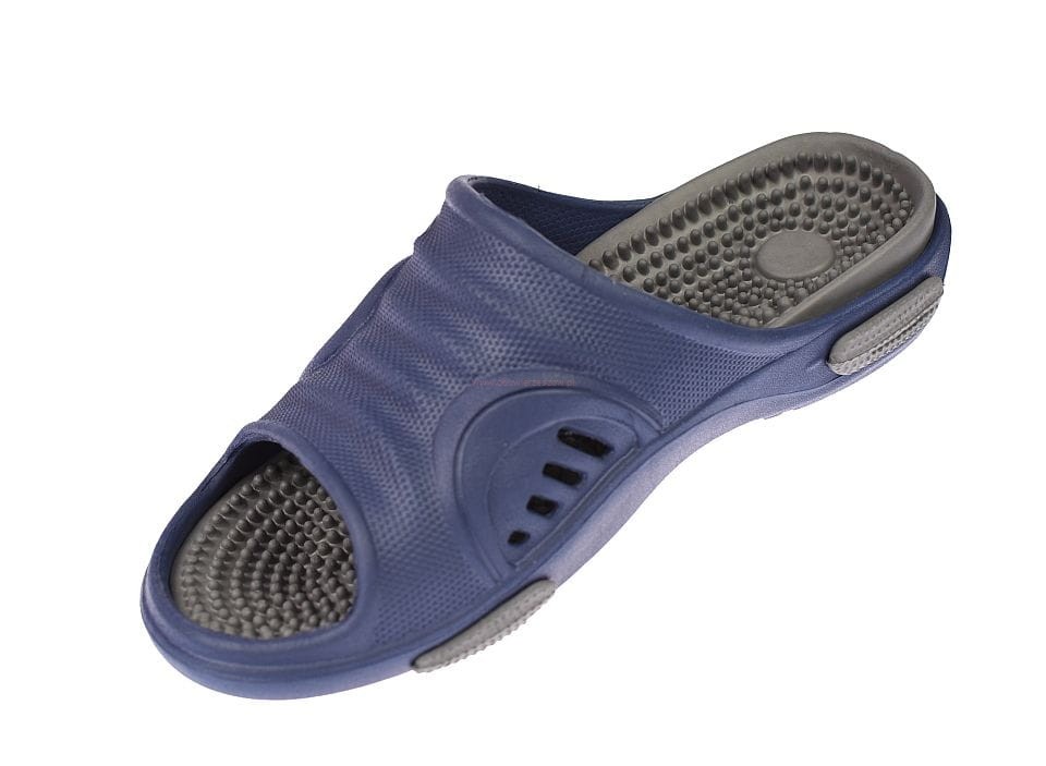 Klapki męskie fakirki z profilowaną wkładką masującą stopy, z masującymi kolcami, lekkie i elastyczne.