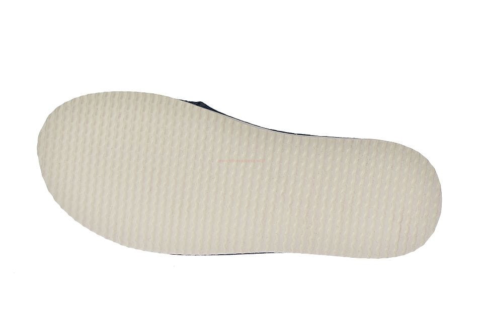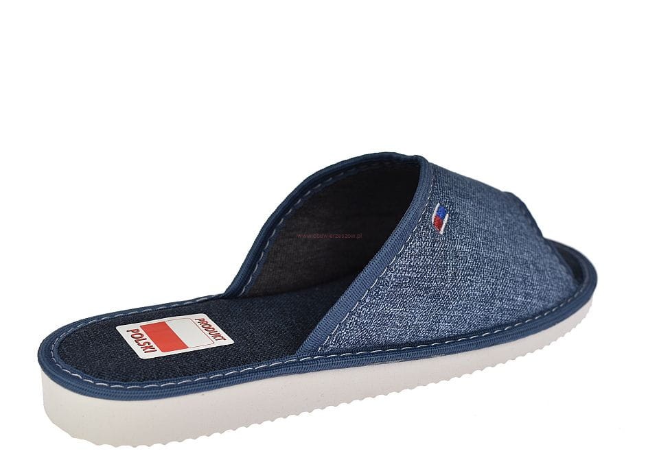 Cholewka została wykonana z elastycznego, przyjemnego w dotyku jeansu, który doskonale dopasowuje się do stopy. Głębsze wycięcie ułatwia zakładanie i sprawia, że kapcie są wygodne również dla osób z wysokim podbiciem. Użyte materiały są w 100% naturalne i pochodzą od polskich producentów.