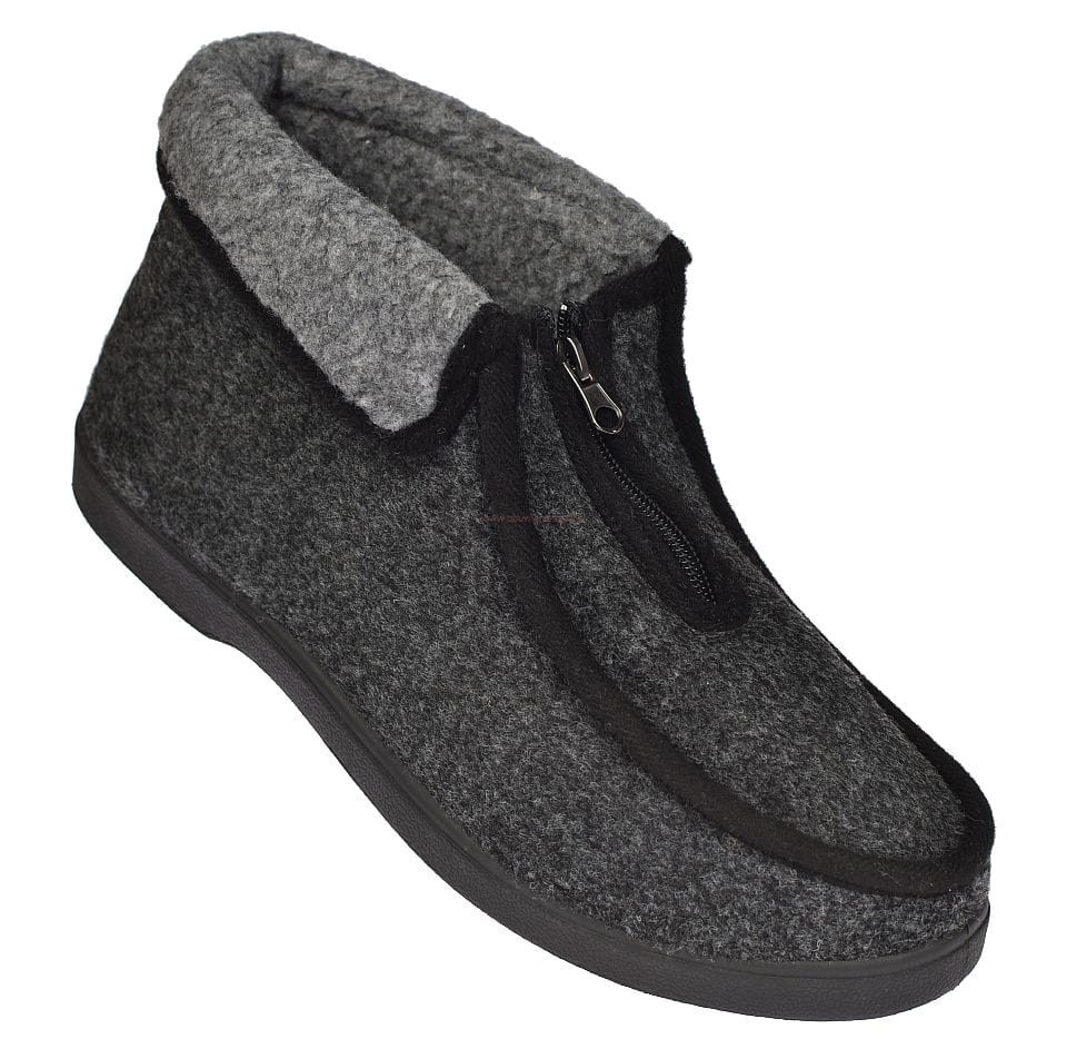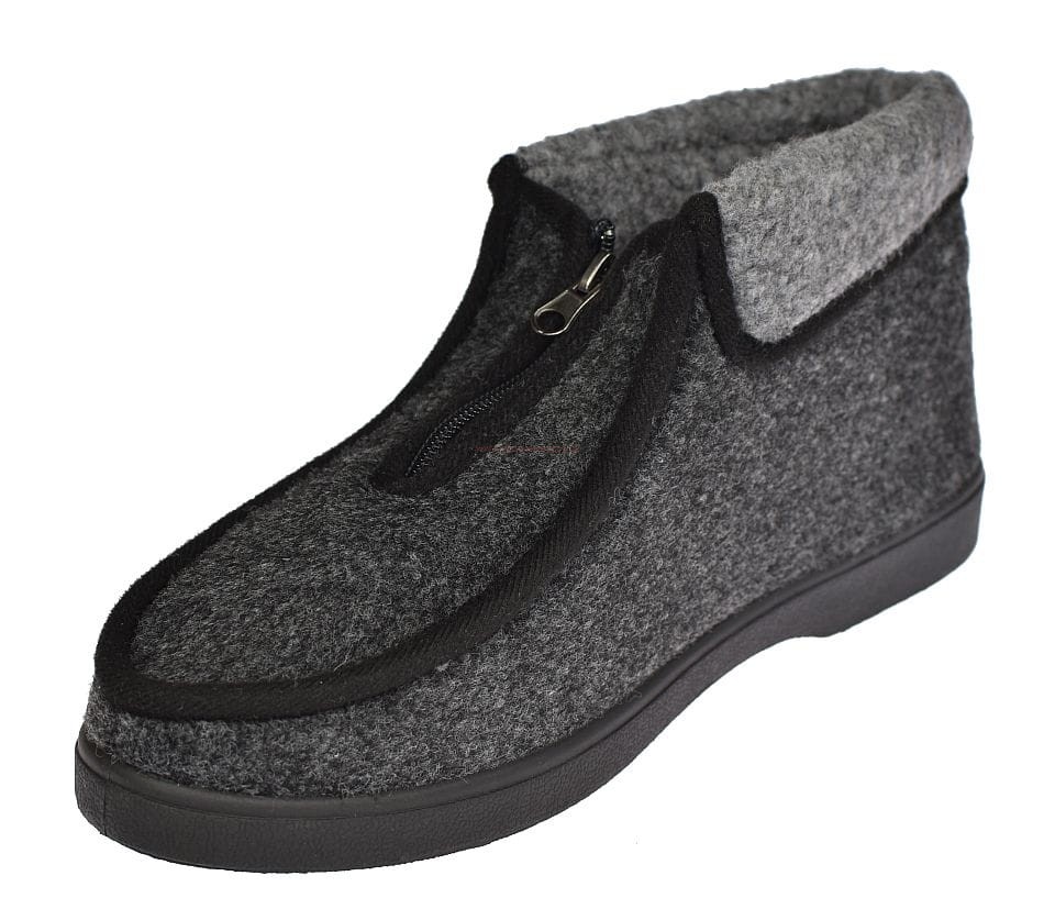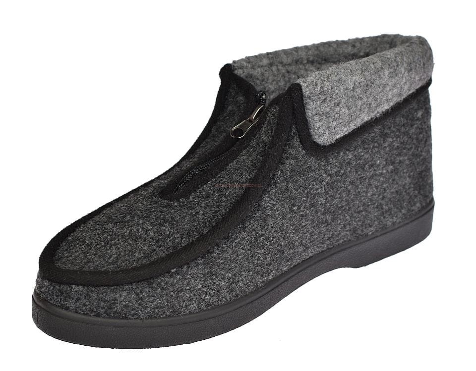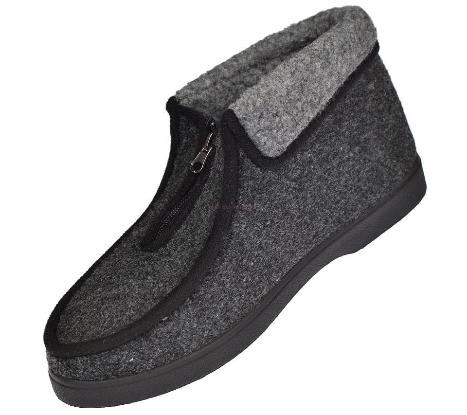 Ciepłe i wygodne kapcie męskie W080-2 szare z filcowym wnętrzem i odwijanym futerkiem na cholewce. Antypoślizgowa podeszwa, idealne do domu i na obejście