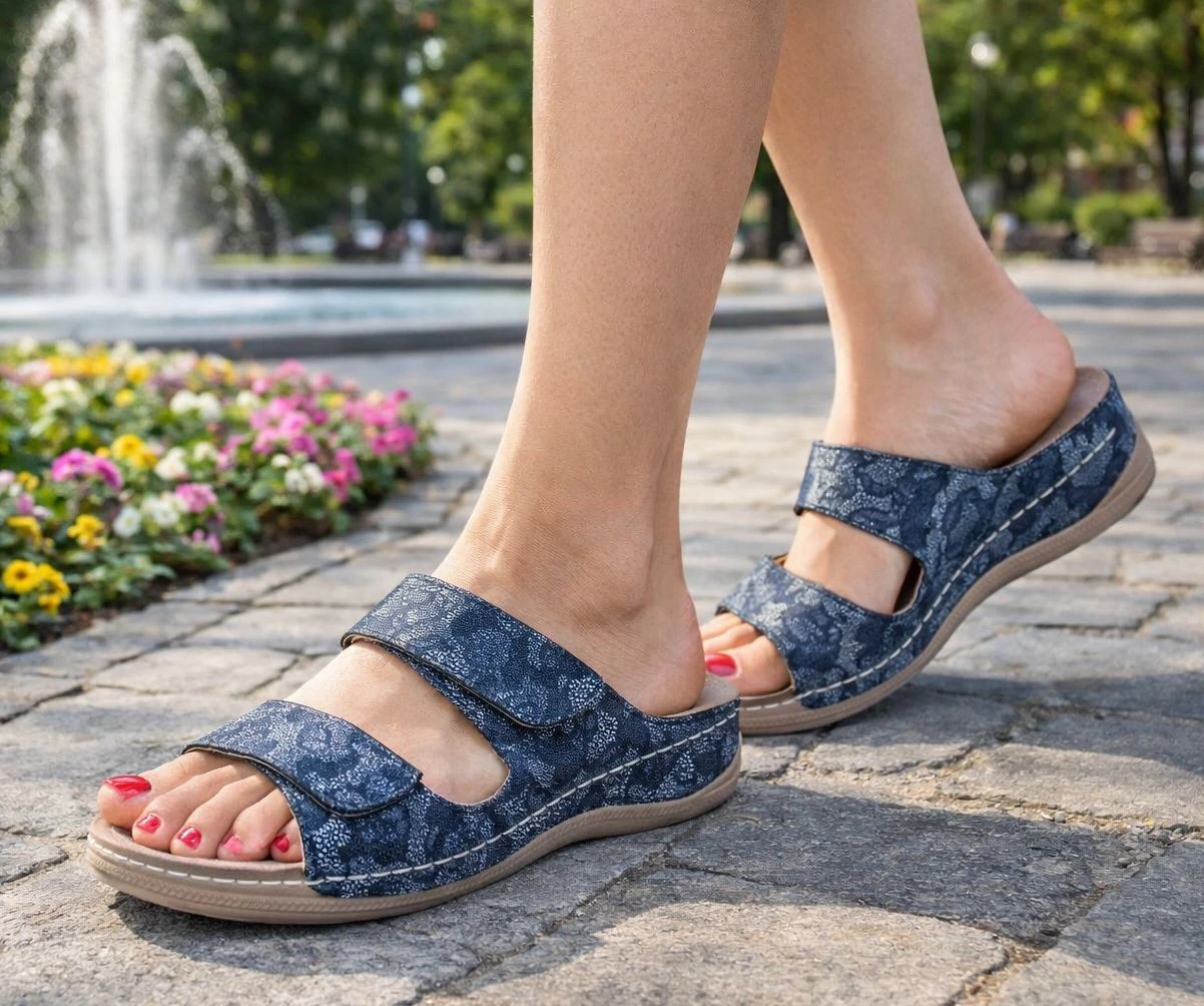 Model został zaprojektowany z myślą o maksymalnym dopasowaniu do stopy. Dwa szerokie paski zapinane na rzep umożliwiają precyzyjną regulację, co sprawia, że klapki świetnie sprawdzą się również dla osób z wrażliwymi lub opuchniętymi stopami.