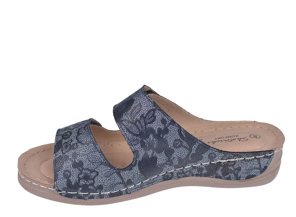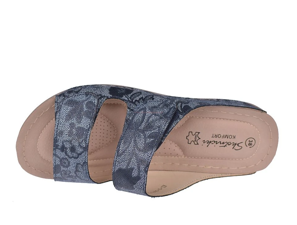 Damskie granatowe klapki na rzepy SKOTNICKI S-3-0859 koturn wygodne