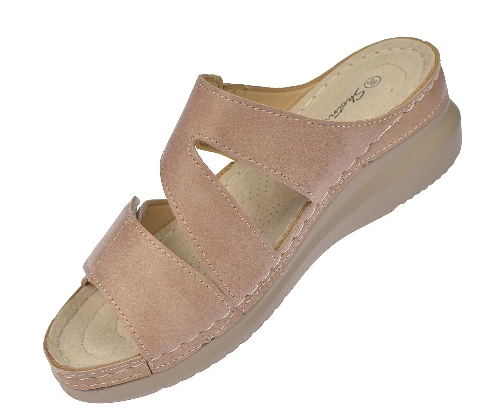 Dodaj swojej stylizacji lekkości i kobiecego charakteru dzięki różowym klapkom damskim na koturnie Skotnicki KL-3-Y134.