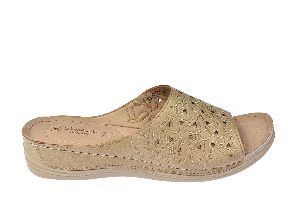 Klapki damskie zdrowotne profilaktyczne skóra wkładka KL-3-0548 beż