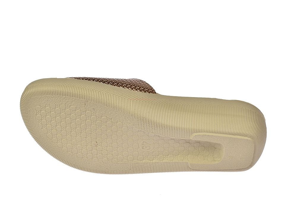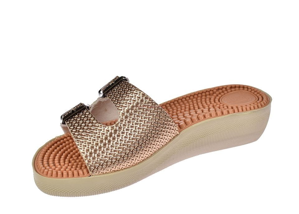 Damskie klapki fakirki Sanitas 2P31 beżowe ze złotym paskiem – komfort i styl prosto z Włoch