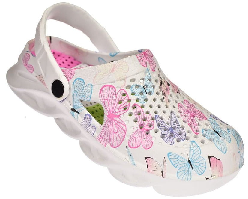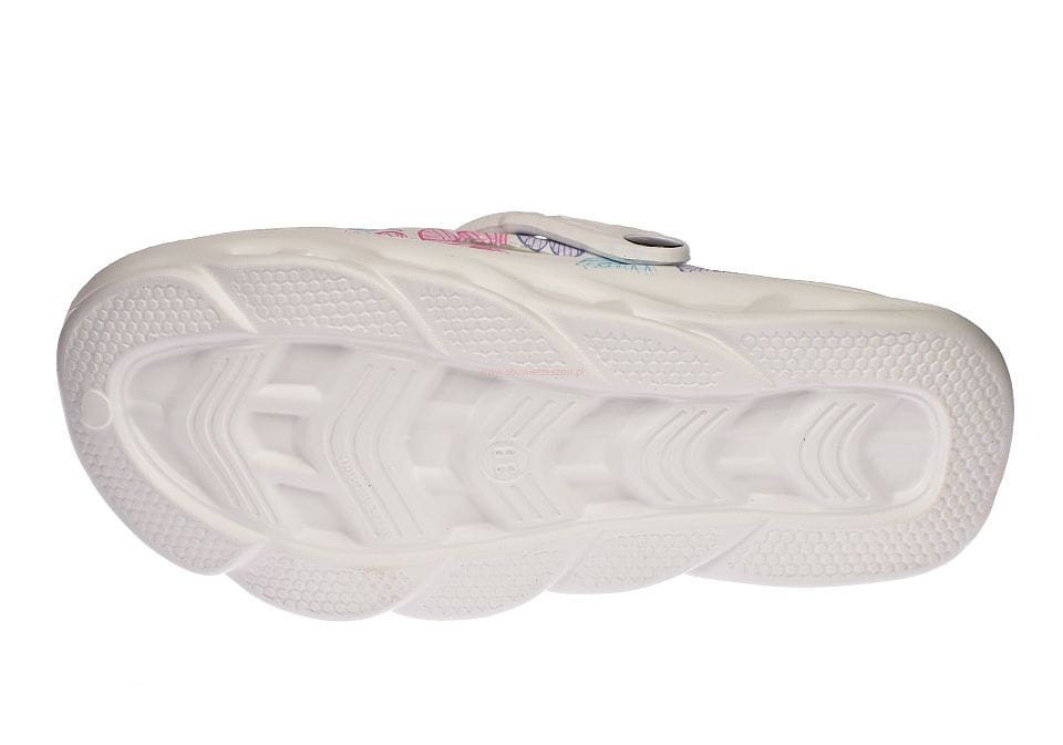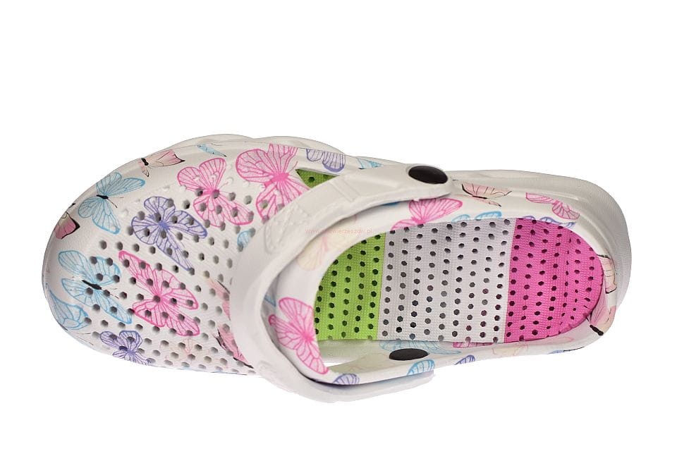Klapki posiadają otwory wentylacyjne na cholewce, które zapewniają doskonałą cyrkulację powietrza i komfort użytkowania nawet w gorące dni. To uniwersalne obuwie sprawdzi się doskonale na basenie, w ogrodzie, a także w pracy w gastronomii czy przemyśle spożywczym.