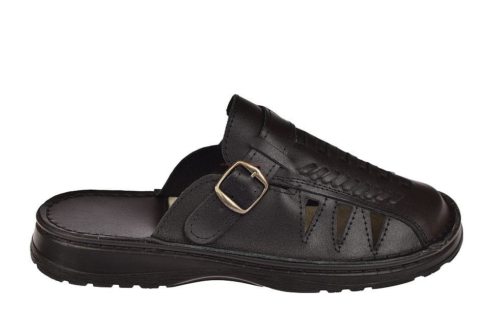 Klapki męskie skórzane czarne KLS-027 BK | Polskie, komfortowe