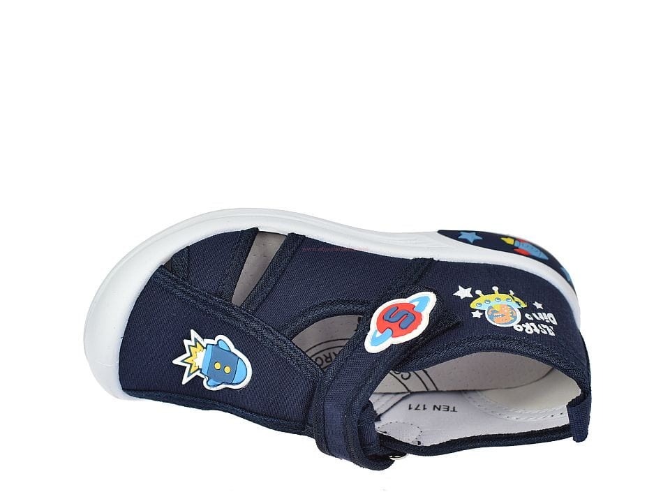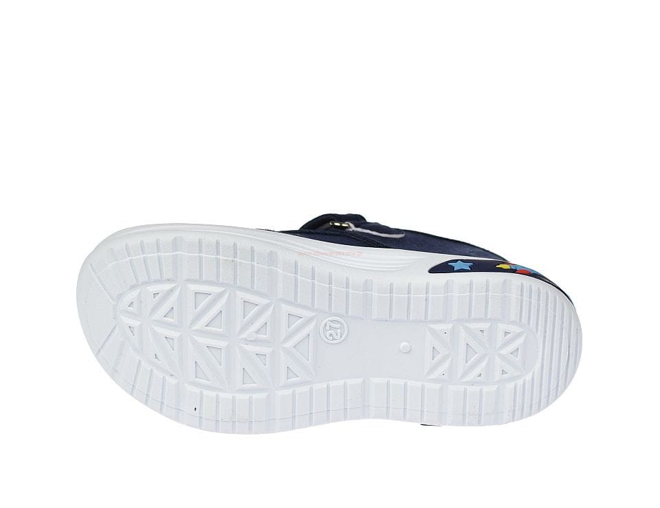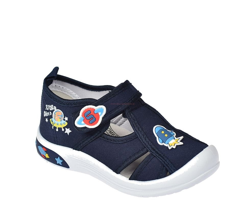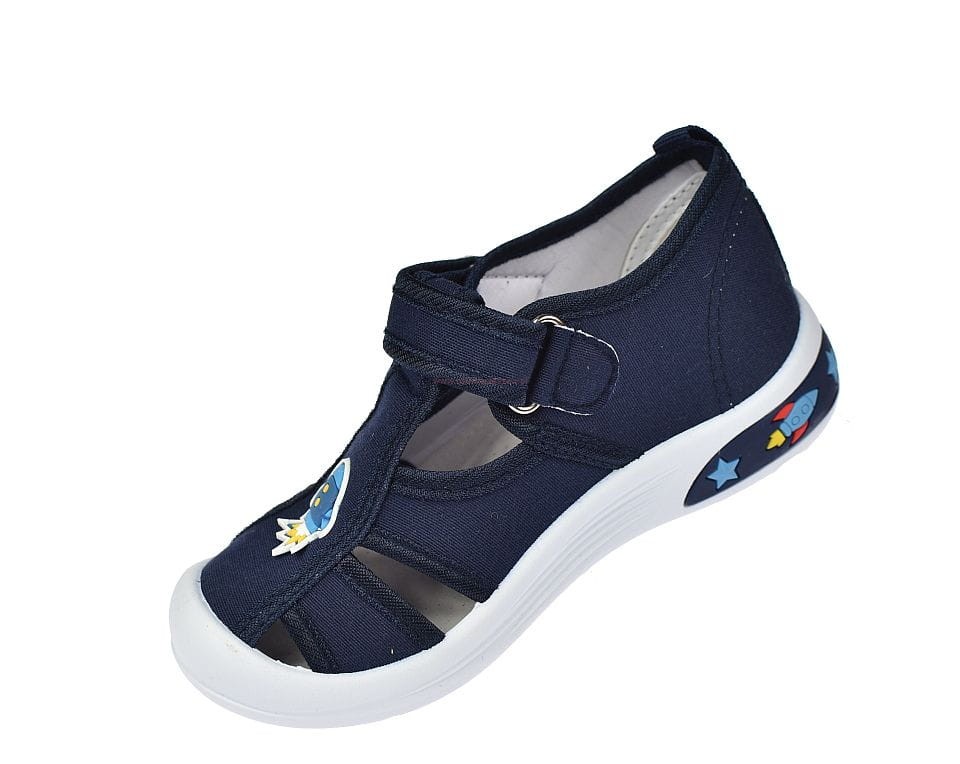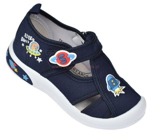Pantofle dziecięce przedszkolne typu sandałki American Club TEN171 granatowe – komfort i stabilizacja dla stóp malucha