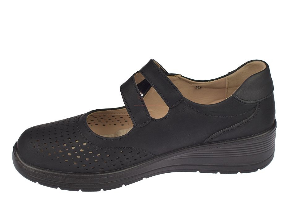 Półbuty damskie na rzepa Dr Jan MD26-43 czarne ażurowe na koturnie