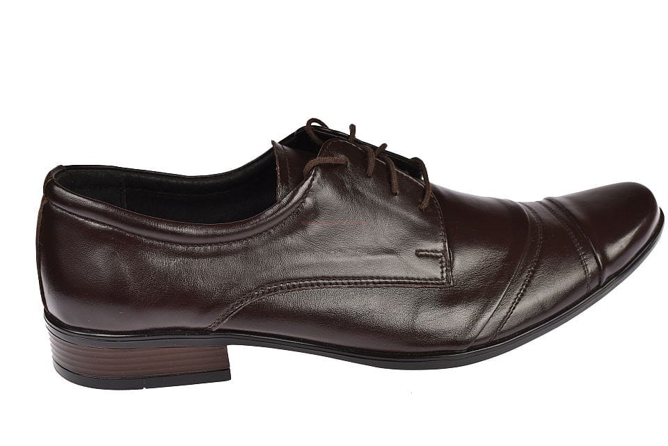 Półbuty męskie skórzane brązowe sznurowane Polskie M123