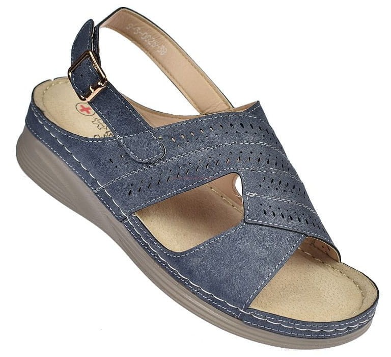 Sandały damskie na koturnie skórzana wkładka komfort S-3-0826 NV