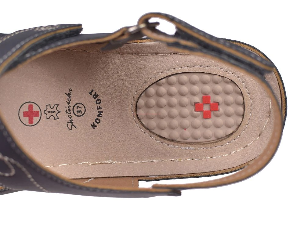 Sandały damskie zdrowotne na ostrogi piętowe S-3-3015 Nnv – skórzana wkładka