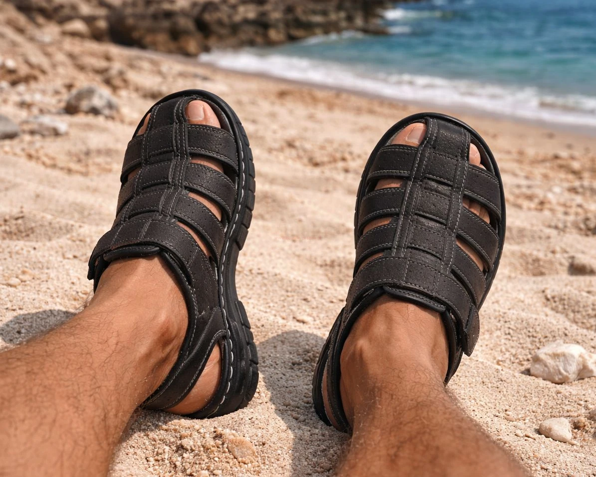 Sandały męskie Skotnicki to idealne rozwiązanie dla aktywnych mężczyzn, którzy cenią wygodę, trwałość oraz funkcjonalność. Model z zakrytymi palcami zapewnia dodatkową ochronę stopy, dzięki czemu świetnie sprawdzi się zarówno na co dzień, jak i podczas spacerów czy lekkiego trekkingu.