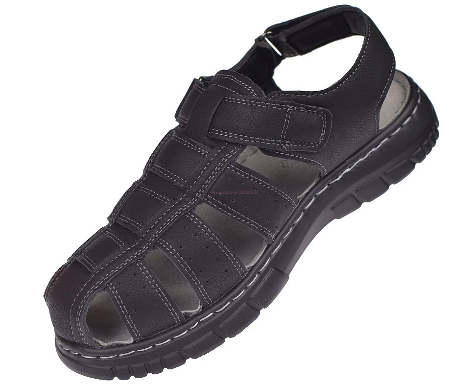 Sandały męskie pełne Skotnicki S-4-1295 czarne zakryte palce rzepy