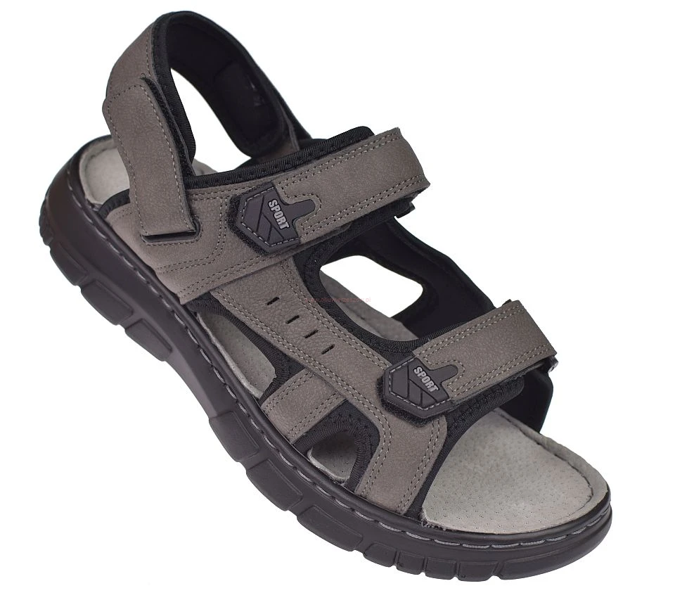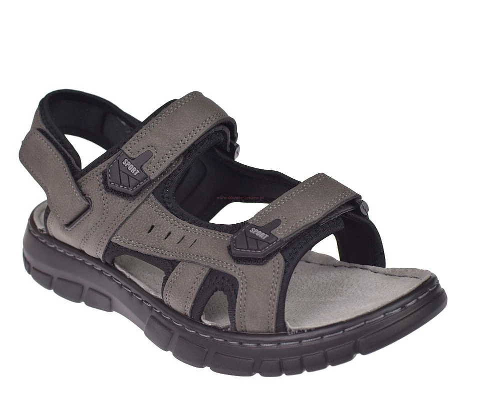 Sandały męskie skórzana wkładka paski na rzepy Skotnicki S-4-1296 GR