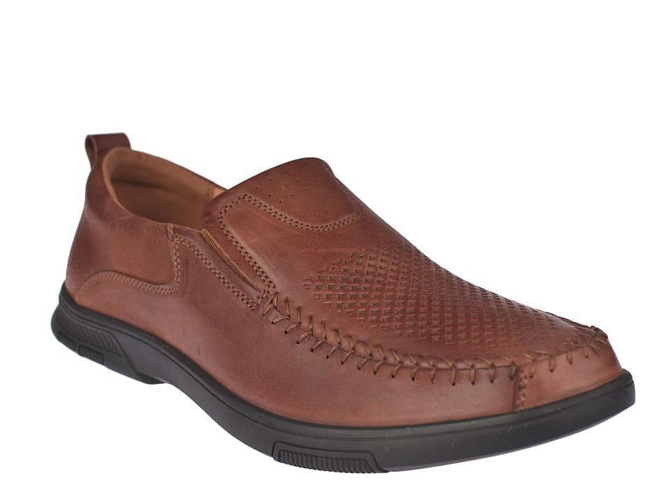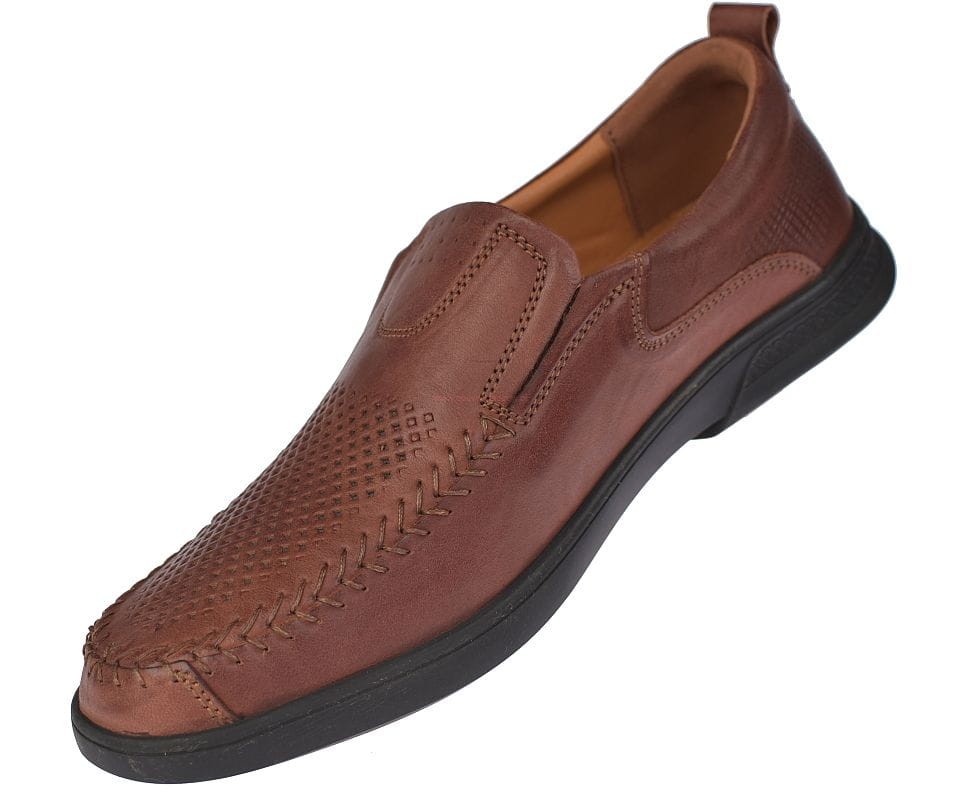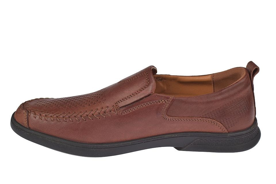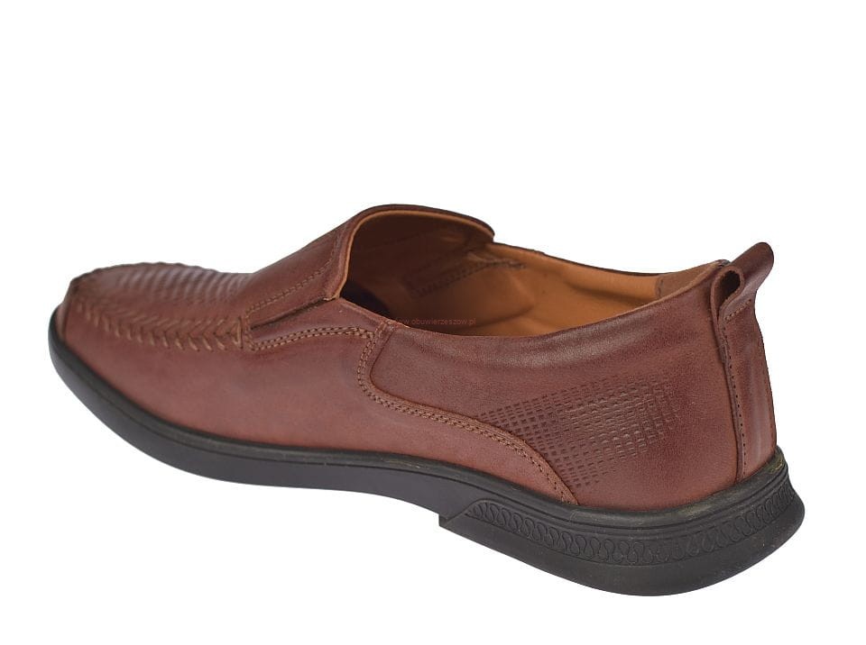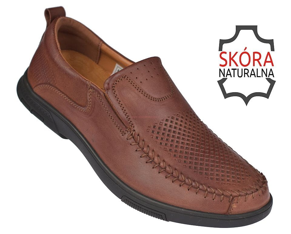 Skórzane mokasyny męskie półbuty wsuwane American CY140 brązowe