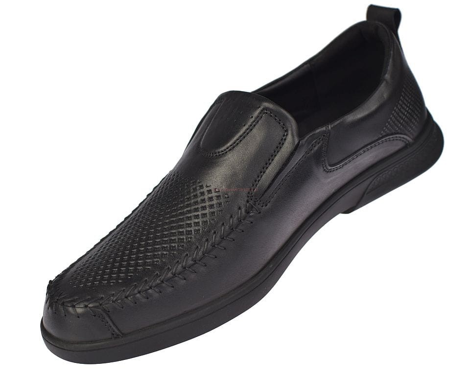 Skórzane mokasyny męskie półbuty wsuwane American CY140 czarne