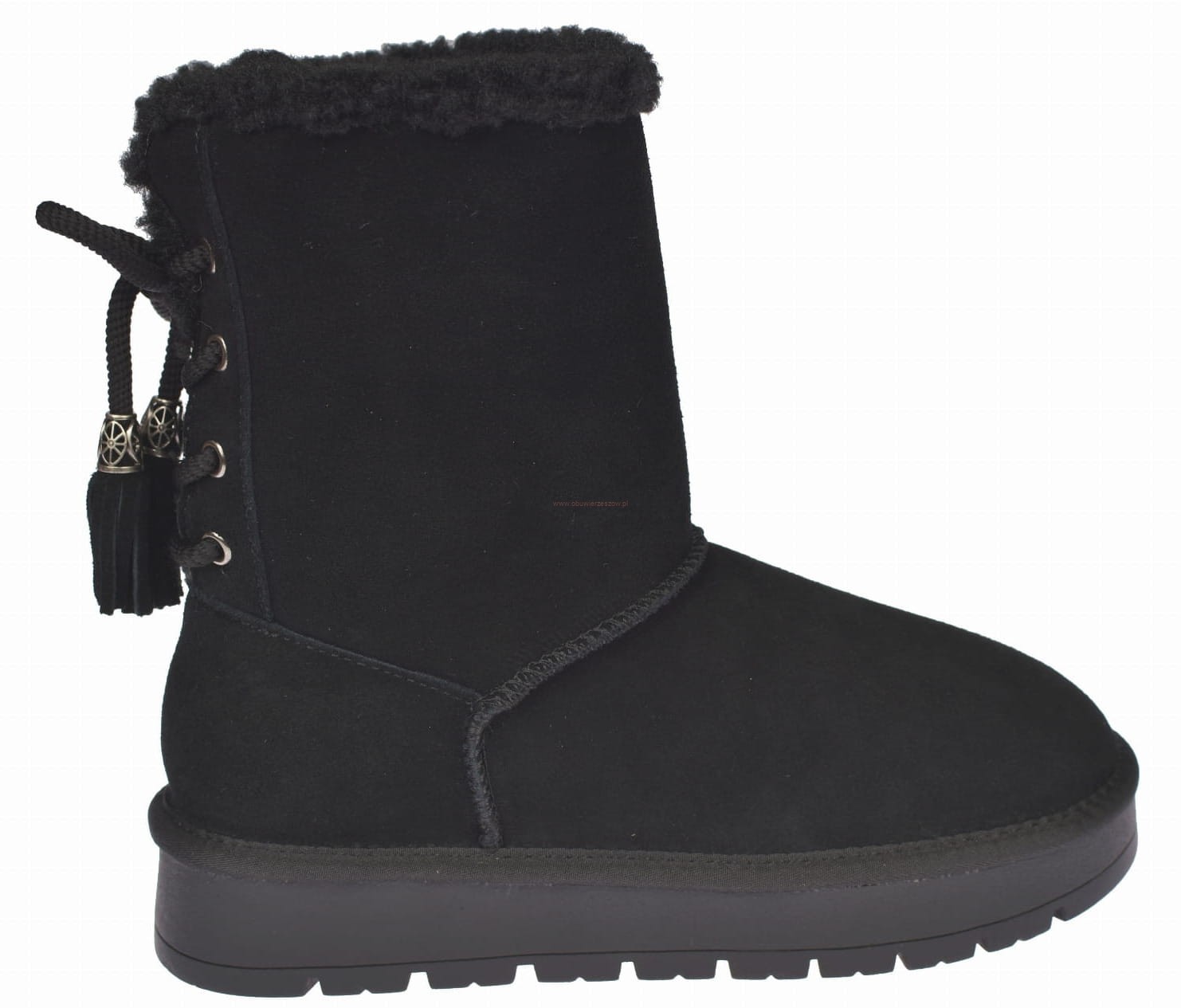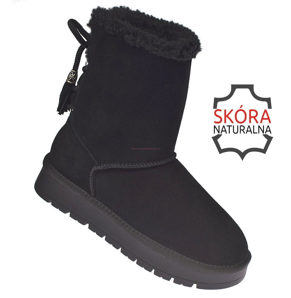Śniegowce damskie wysokie skórzane CY180 Bk sznurowane ocieplane futerkiem