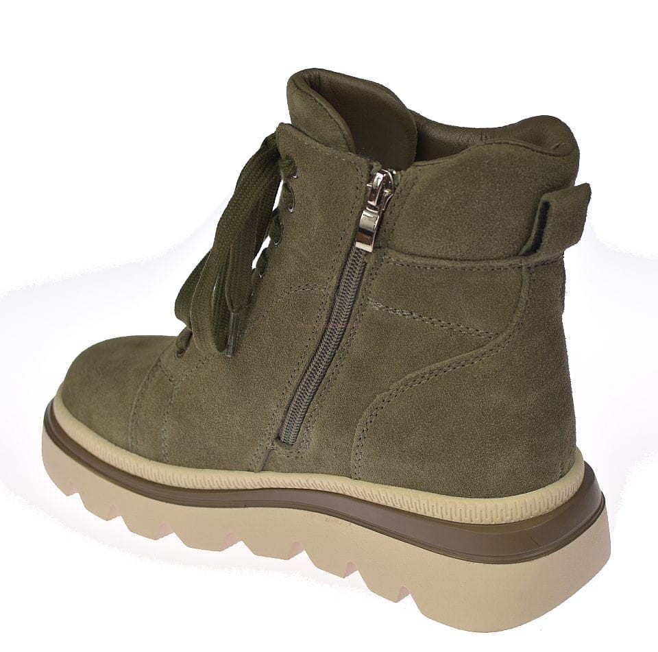Botki skórzane damskie B-3-1379 khaki to idealny wybór dla kobiet szukających modnych i wygodnych butów na zimę – pasują zarówno do miejskich stylizacji, jak i casualowych outfitów na chłodne dni.