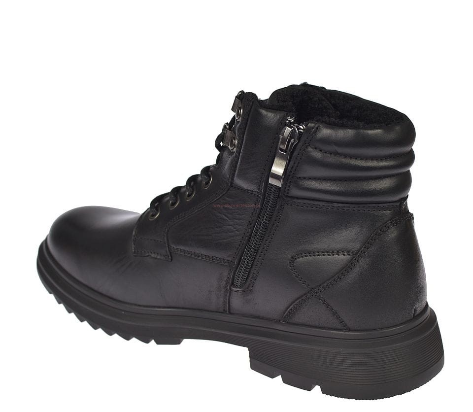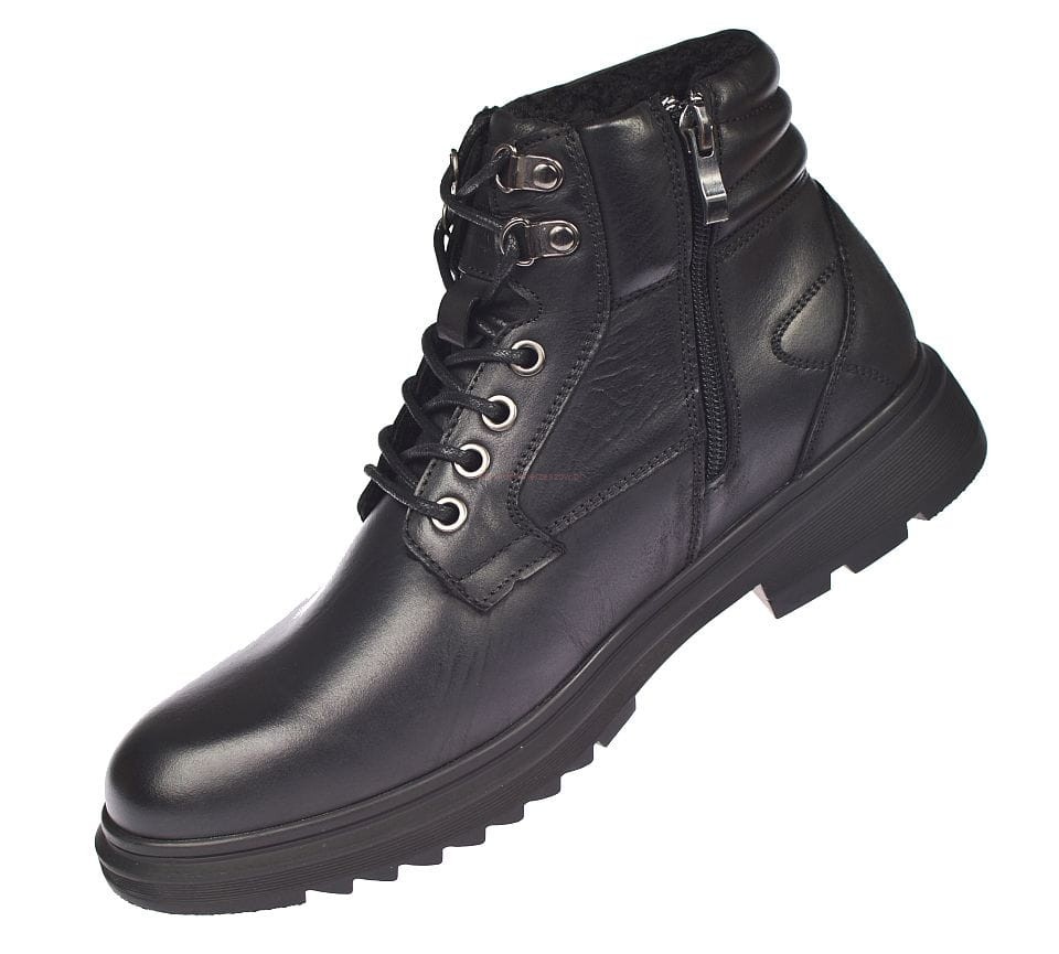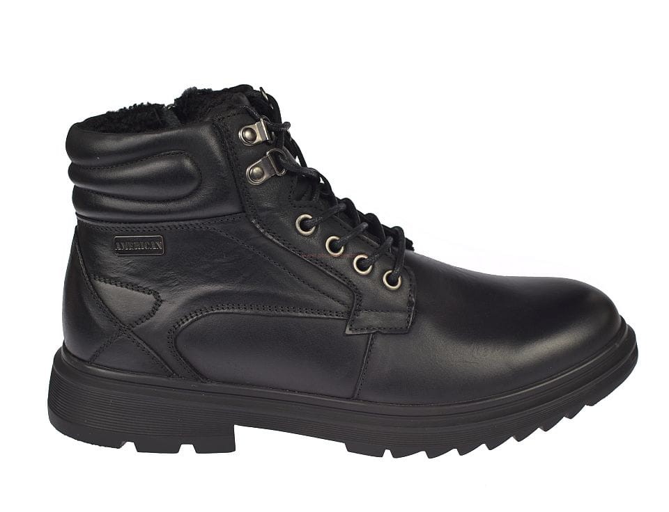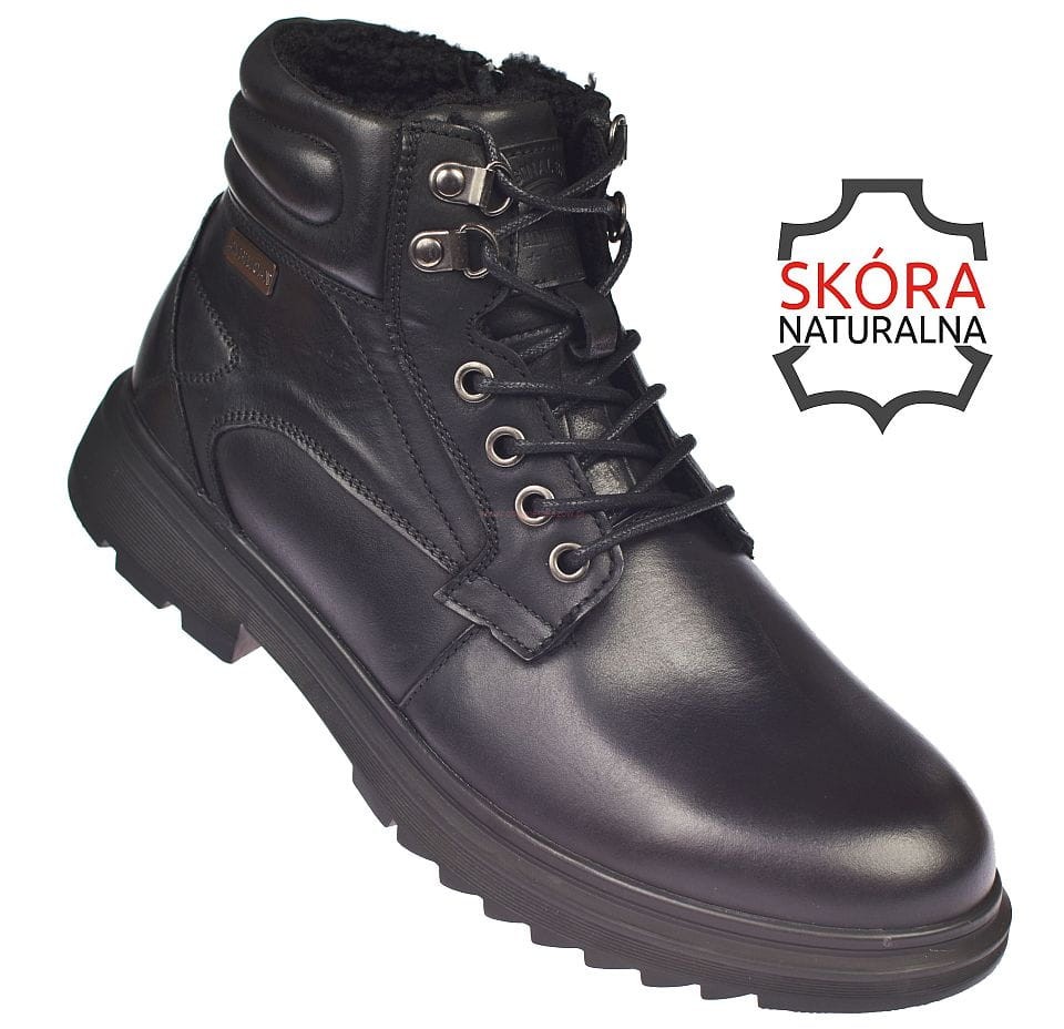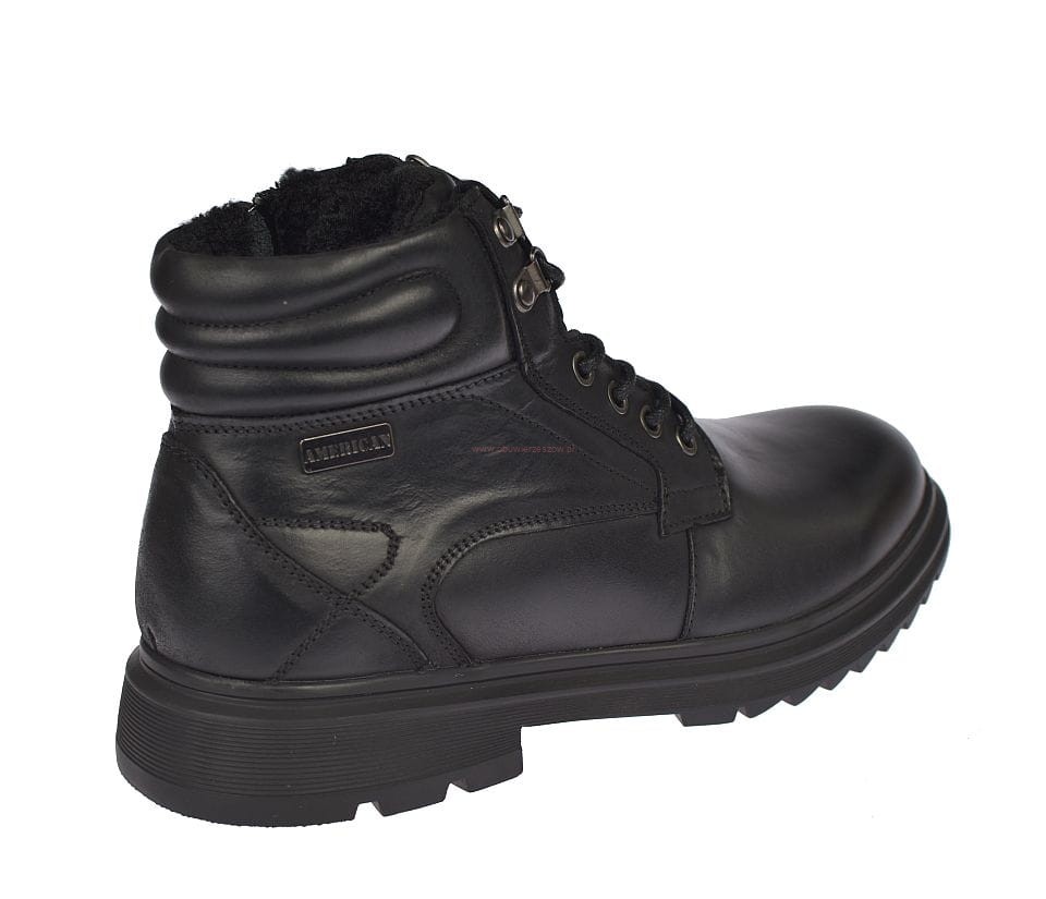 Eleganckie czarne sztyblety męskie ocieplane American CY136 ze skóry naturalnej. Sznurowane i zapinane na suwak od wewnętrznej strony – ciepłe, wygodne i stylowe obuwie na zimę.