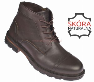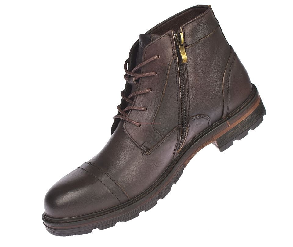 Trapery męskie skórzane trzewiki CY166 – brązowe, ocieplane, ze sznurowadłami i zamkiem